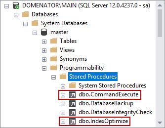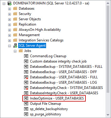 The SQL Server Index and Statistics Maintenance part of Ola Hallengren’s solution consists of IndexOptmize stored procedure and IndexOptimize – USER_DATABASES agent job, that are created during the installation process. The procedure CommandExecute also has to be installed in order to use the index optimize solution. All these procedures and jobs are installed by default, but if you prefer the custom installation, make sure that everything is installed properly on the server.