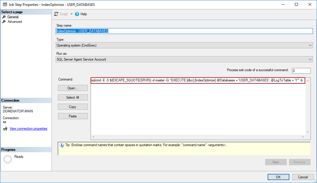 Now that the all procedure parameters are covered, we can check each of them for the job that is pre-created by Ola’s scripts. To do this, we will need to check the script that is used in this job: