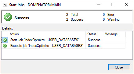 IndexOptimize – USER_DATABASES SQL Server Agent job