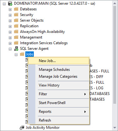 In Object Explorer, right click on Jobs under the SQL Server Agent node. Click on New job in context menu.