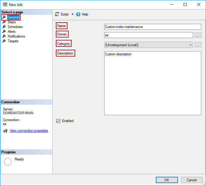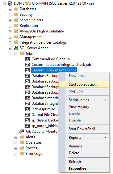 This query can be used as is to run the maintenance task, but to take the full advantage of this custom solution, it is best to include the script in SQL Server Agent Job. To create the job, perform the following steps: