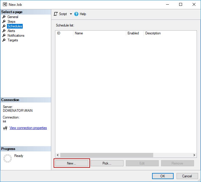 In the New Job form, navigate to the Schedules tab. Click on New… button to create a new schedule.