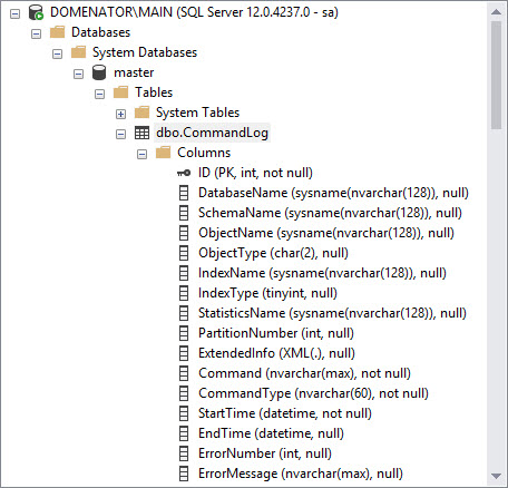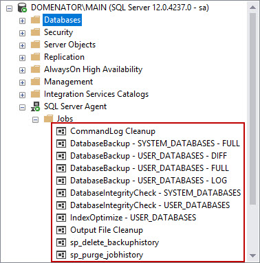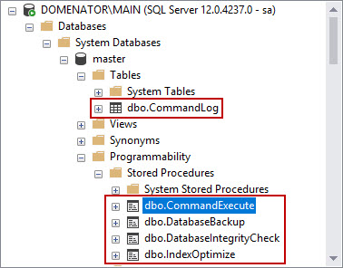 Execute the MaintenanceSolution.sql against the server. The script creates one table (dbo.CommandLog), one function, and four stored procedures in the master database. It also creates 11 pre-created SQL Server Agent jobs. Each of the created jobs will be discussed separately