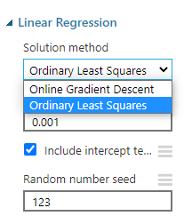 As shown in the above screen, there are two types of methods, Ordinary Least Squares, and Online Gradient Descent methods.