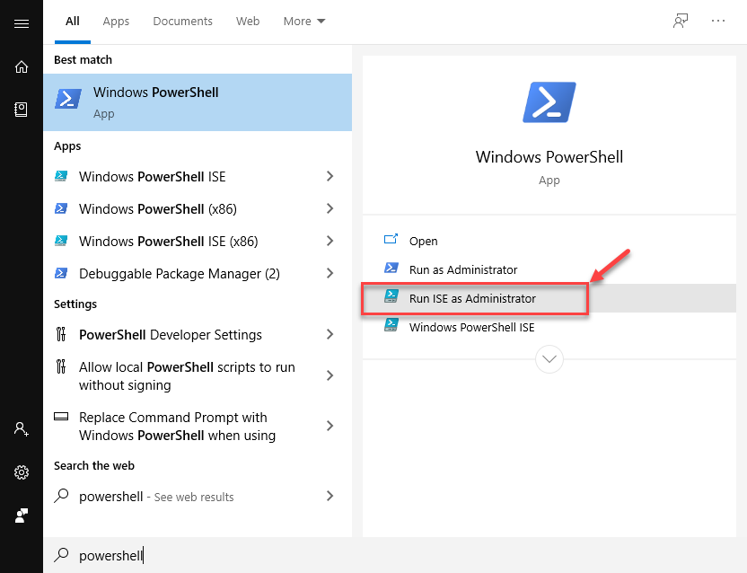 In order to use the Power BI modules in PowerShell, we need to install the specific modules with which we would be working. These modules act as a wrapper to the PowerShell commands that we are going to execute. Let us first go ahead and start the PowerShell ISE from the Start menu. Select the option “Run ISE as Administrator“. The PowerShell ISE is the Integrated Scripting Environment.