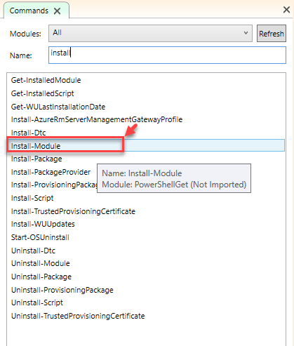 Now let us install the Power BI PowerShell Management commandlets. To install the module, we need to search for the Install-Module command. You can directly search the command on the right-hand command add on box, select it and click on the Show Details button at the bottom of the pane.