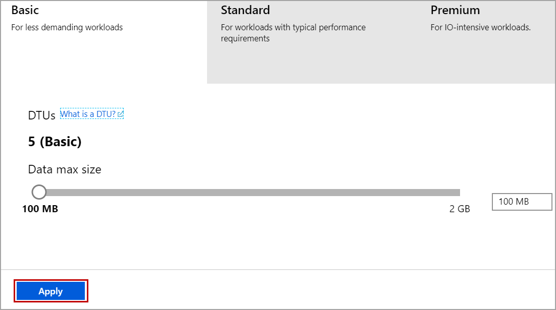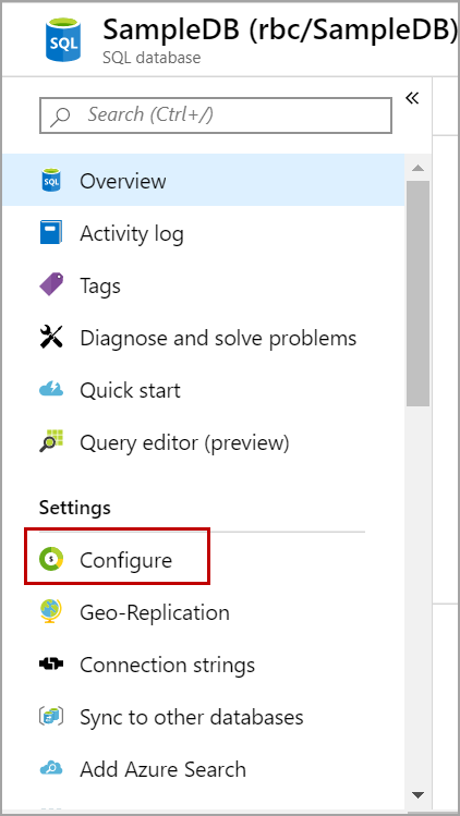 Navigate to the SQL databases. Click on the database and click on Configure under the settings section.