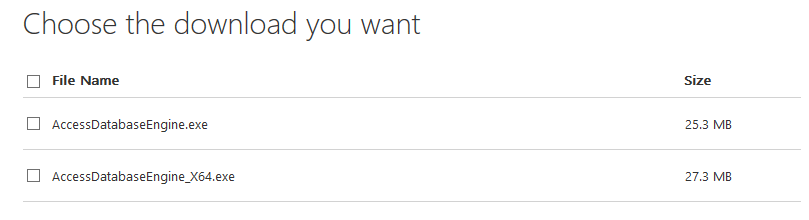 • AccessDatabaseEngine.exe is for the SQL Server 32-bit version