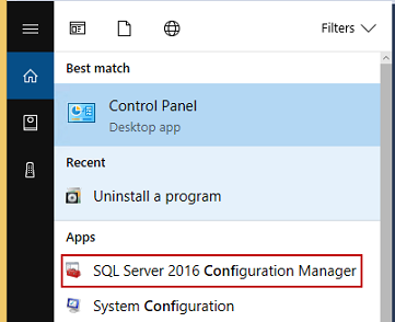 From the SQL Server Configuration Manager dialog, select SQL Server for on which has created a linked server: