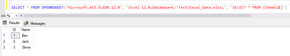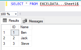 The following SQL code will list all data from the Sheet1 in the Excel_Data.xlsx file for which we are created the linked server: