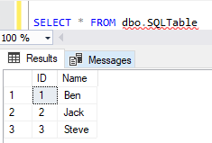 When query the SQLTable table, the following result will appear: