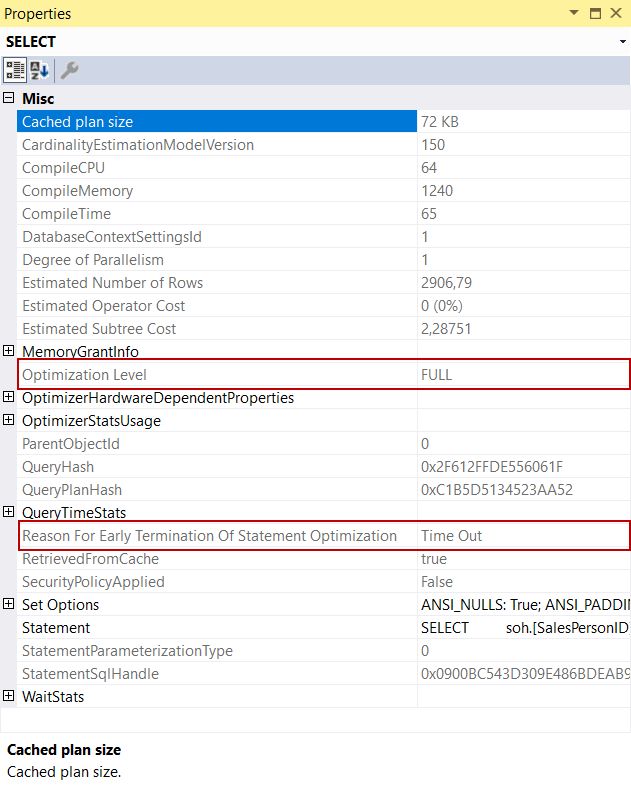 On the other hand, sometimes the optimizer terminates exploring an optimum query plan for the complex queries because after all attempts it could not find an optimum execution plan. In this circumstance, the Reason For Early Termination Of Statement Optimization attribute shows the Time Out.