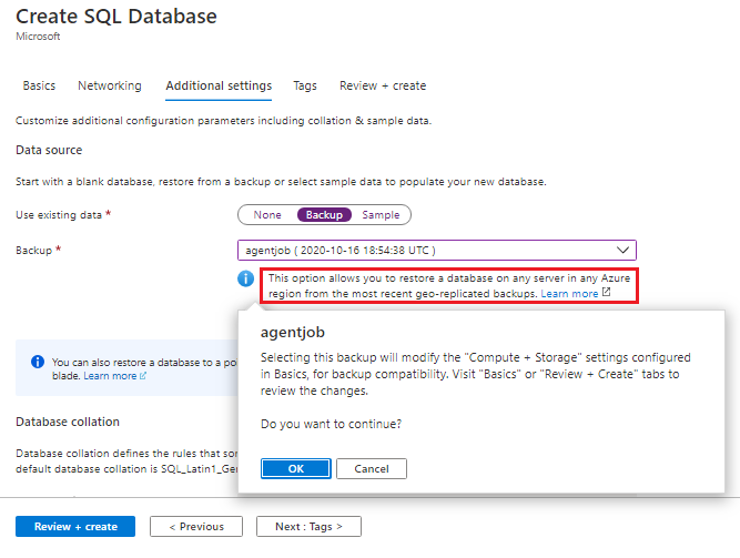 - Note 1: If the application is critical and business availability is of utmost importance, then Geo-restore might not be a good option. If the application is non-critical, and relatively small and the business can withstand the longer recovery paths then geo-restore may be a relevant disaster-recovery solution. In other words, for critical applications and large databases and must ensure business continuity and disaster-recovery strategy then using active geo-replication is a viable option. The active geo-replication setup uses Auto-failover-groups and provides the lower recovery-point-objective and recovery-time-objective, and there is no limitation on the target region.