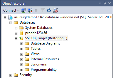 In this case, the SSISDB restored to the target Azure SQL database.