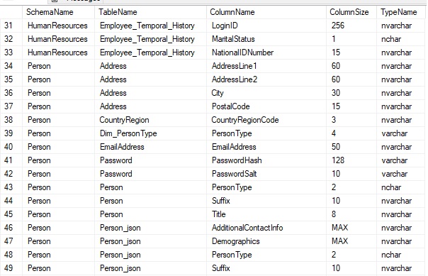 The column GroupName is defined as custom type “Name”, which is a NVARCHAR(50), but in sys.types will appear as Name instead. We can work around this if we wish by making an additional join to sys.types in order to find the corresponding system data type for the custom data type: