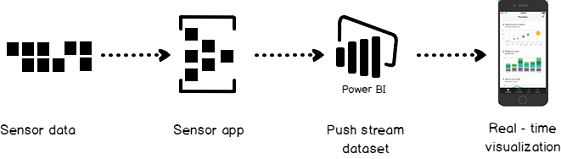 Now, we will create a demonstration of real-time data visualization in Power BI. The below architecture diagram can describe the main framework of our demonstration. According to this the diagram as you can see data flow is only one way. Sensor App pushes data to Power BI over an end-point. This end-point define as Push URL by Power BI.