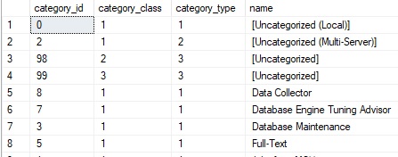 From within a SQL Server, you may select a category for each job. This allows for classification of reports, data collection processes, alerts, etc…When acting on jobs, we can take that category into account in order to increase the priority of some jobs or decrease the priority of others. For example, we could set some jobs as unmonitored and ignore them. Alternatively, we could set some jobs as critical and have them hit up the on-call operator’s cell phone the moment they fail.
