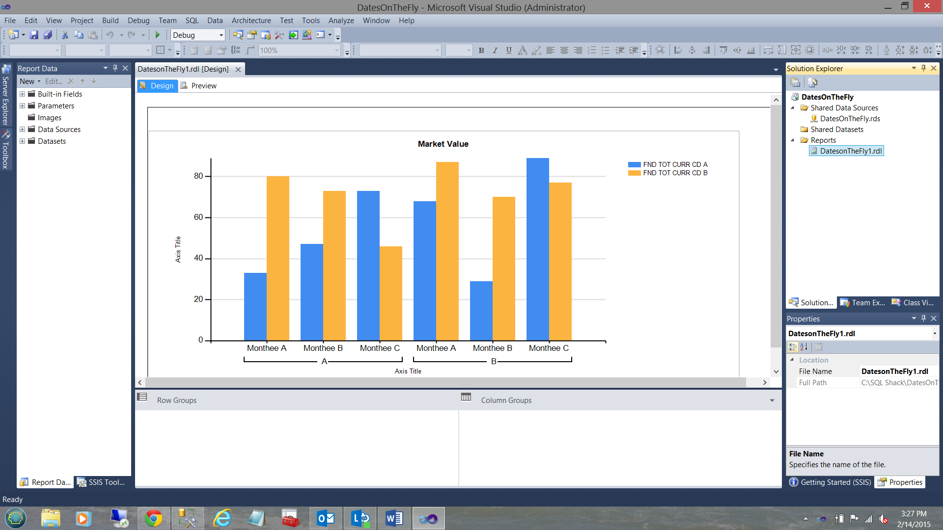 We begin by opening SQL Server Data Tools and opening the project that we created in the article entitled “Setting run dates on the fly”.