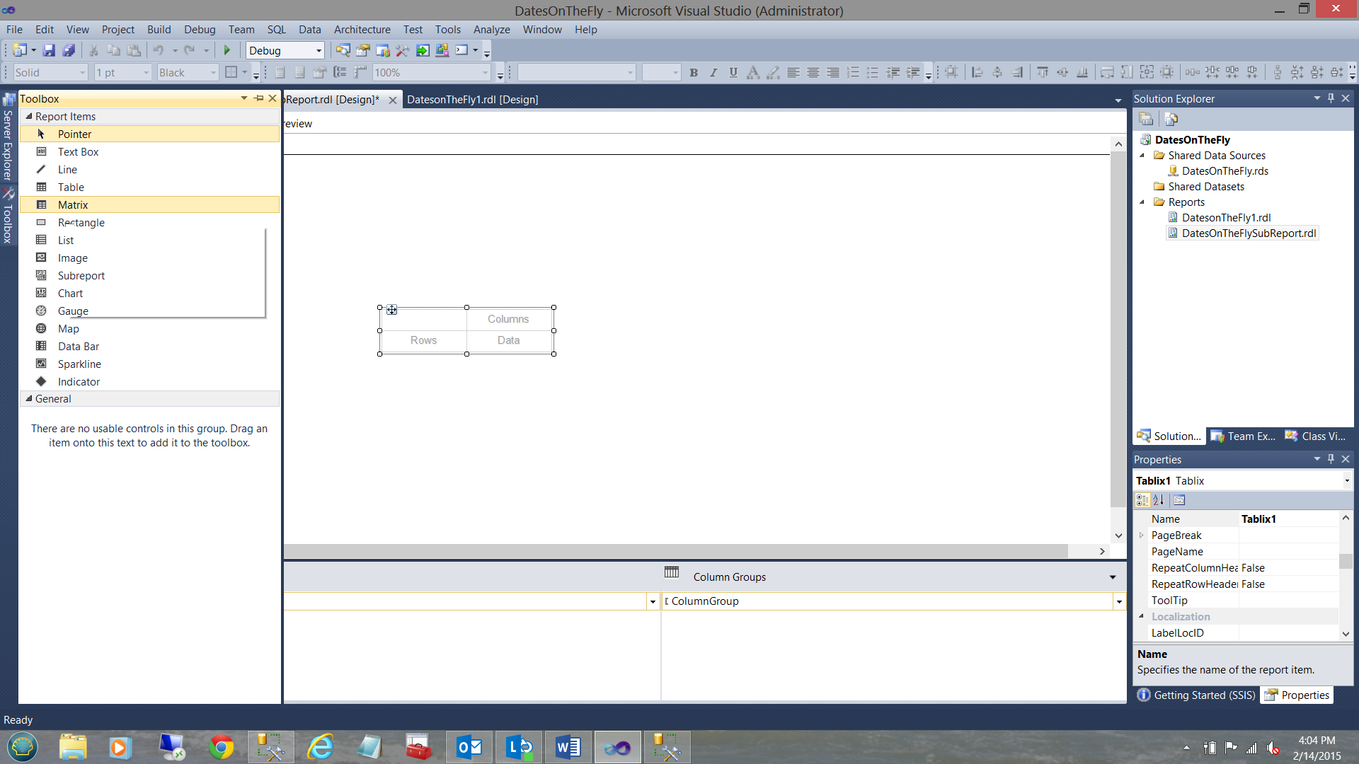 - We have created a matrix based sub-report which is called by the report that we created within a previous “get together”.