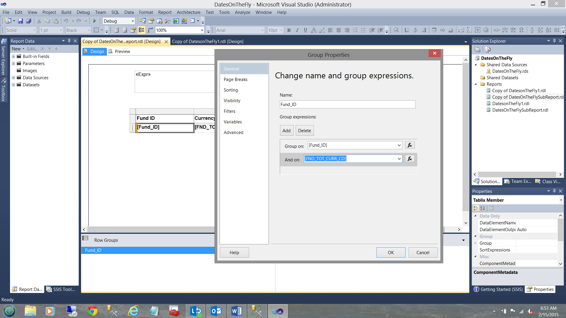 Last, but not least, we must modify the data grouping, to group not only on the fund but on the currency code as well (see below).
