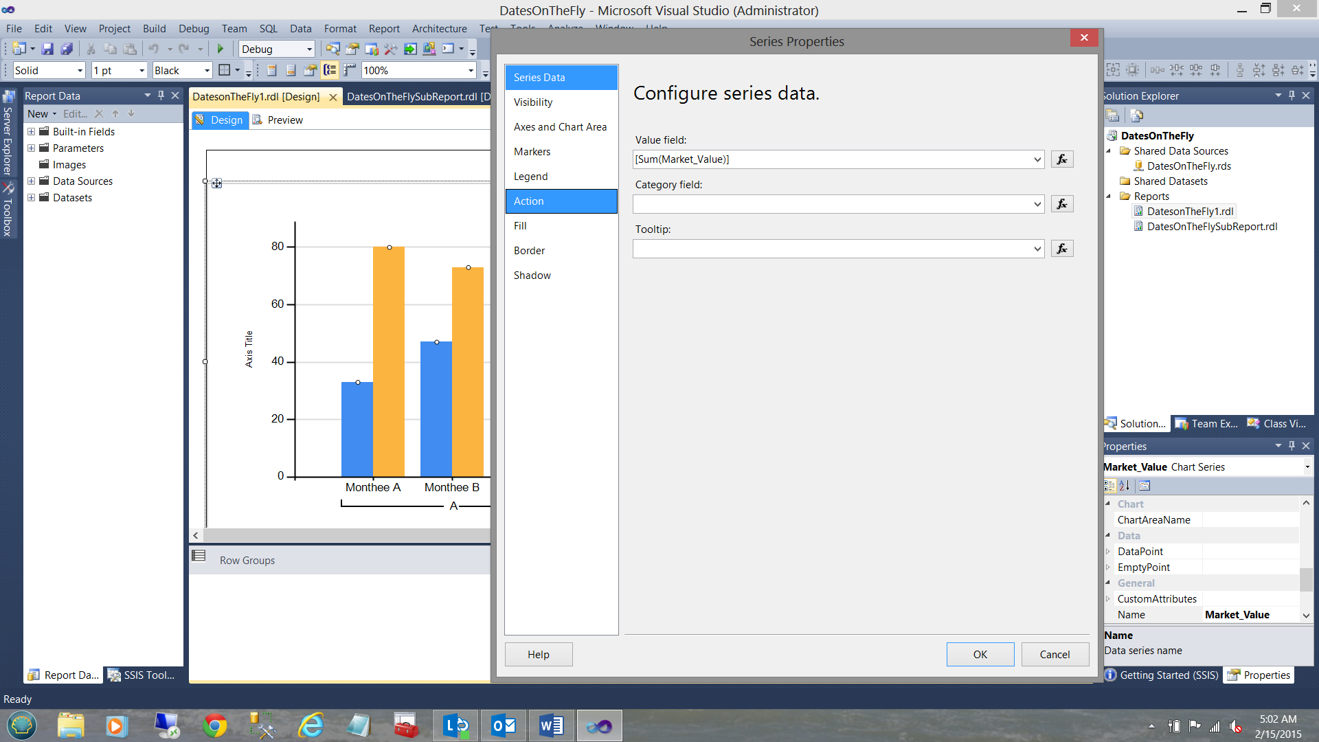 With the “Series Properties” dialog box open (see above) we select the “Action” tab (see above).