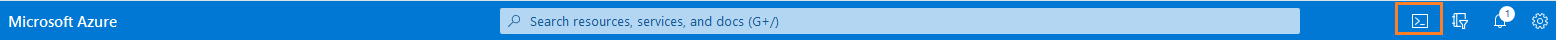 In the Azure portal, click on the cloud shell icon, configure the storage account, and launch the PowerShell terminal as shown below.