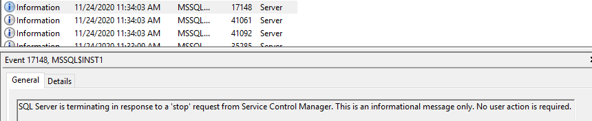 SQL Service stopped at the secondary replica at 11:34:03 AM, as shown in the following event viewer entry. Till this point, the AG replica is working in the synchronous commit mode