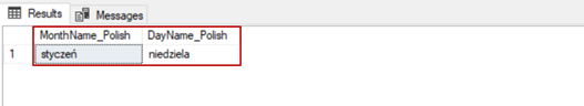 In addition, we can determine the language for stated session and in this way we can adapt date/time functions to particular language. In the following query, we will set language to Polish and then we can see the changing of the month and day name according to Polish locale.