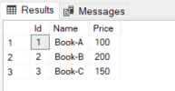 The “Books” table contains three columns: Id, Name, and Price. The Id column is the primary key column and it cannot be NULL. A column with a PRIMARY KEY constraint must contain unique values. However, since we have set the IDENTITY property for the Id column, every time a new record is added in the Books table, the value of the Id column will be incremented by 1, starting from 1. You need to specify the values for the Name column as well as it cannot have NULL. Finally, the Price column can have NULL values.