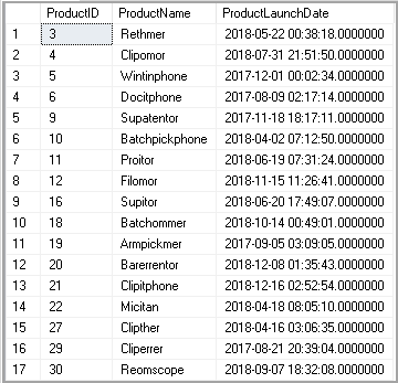 In the output, we can see all products except those launched in the Year 2019.