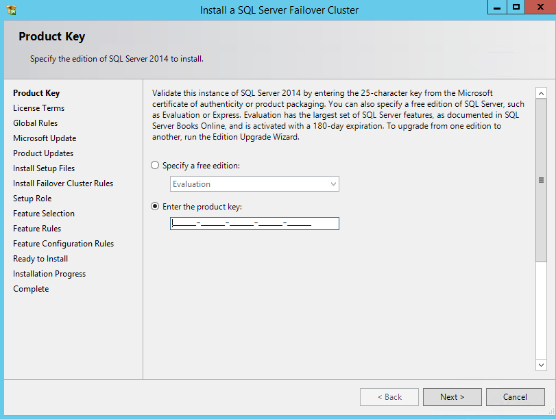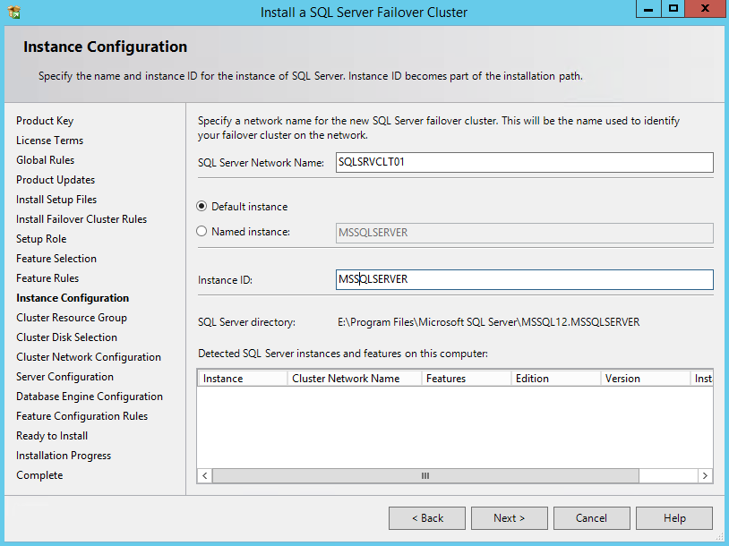 Now we need to fill the SQL Server Network Name. Do you remember that computer name that I referred in the beginning of this article? I’m talking about “SQLSRVCLT01”. It’s time to use it! Fill the network name and proceed to the next step.