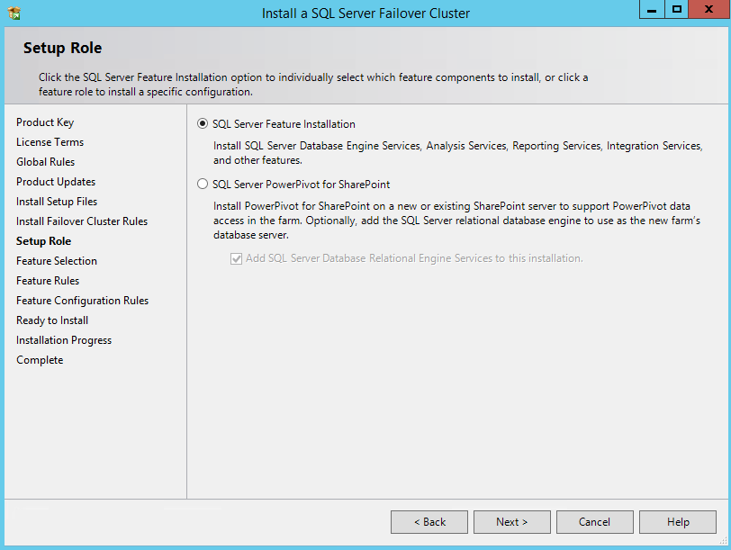 For this step, just keep the first option (SQL Server Feature Installation) selected and proceed to the next step.
