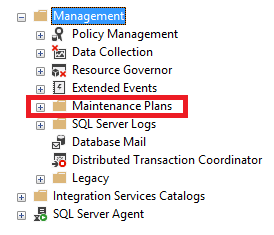 SQL Server Maintenance Plans can be found under the Management node of the SQL Server instance using the SQL Server Management Studio, from where these Maintenance Plans can be created or edited using an easy wizard-based process, as shown below: