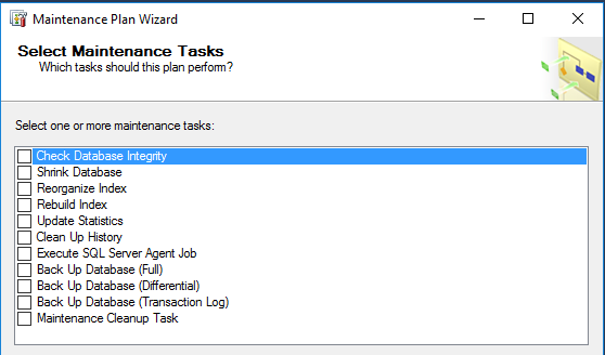 All these tasks that can be performed using the SQL Server Maintenance Plans are shown below: