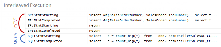 If you take a Profiler, enable events SP:StmtStarting, SP:StmtCompleted, SQL:StmtStarting, SQL:StmtCompleted and run the query without and with a TF, you’ll see what does it actually mean “interleaved” in terms of the execution sequence.