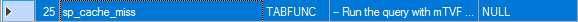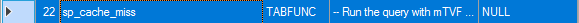 We have cleared the procedure cache before running the query so there is no plan for the mTVF and we see a cache miss.