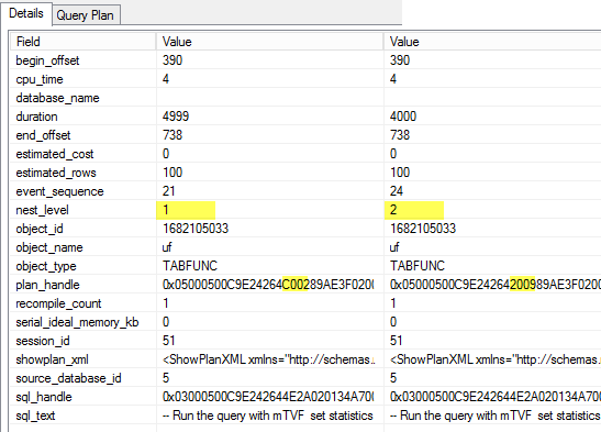 If you run the query a couple of times, each time you will see the new estimated value, depending, on what second’s portion is added to a top expression and what is the actual number of rows in the mTVF plan. As we can see the actual number of rows from the function is really used to estimate cardinality.