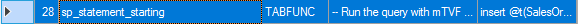 At this point, we have a plan for the mTVF and ready to execute it. The first statement in mTVF is an INSERT statement and it starts executing.