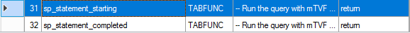 - sp_statement_starting – Occurs when a statement inside a stored procedure has started.