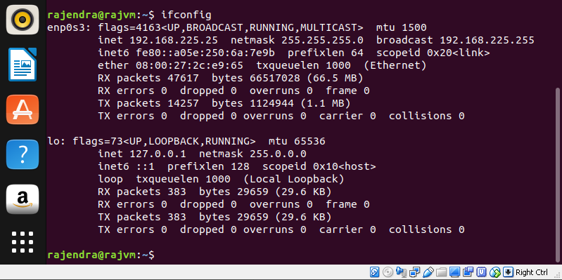 Click OK to save this setting. This takes little time to get the setting effective. Now, we can run the ‘ifconfig’ command and check the IP address.