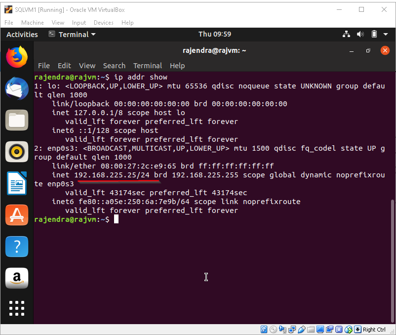 Alternatively, we can also run the command ‘IP addr show’ to check the IP address. You can see the IP address from the screenshot ‘192.168.225.25’.