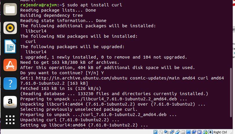 Install curl utility: curl utility in Linux is used to transfer file using different supported protocols.