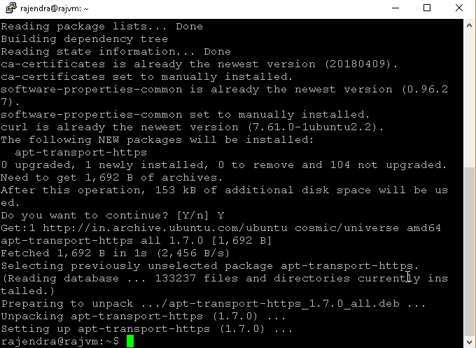 - $ sudo apt-get install apt-transport-https ca-certificates curl software-properties-common