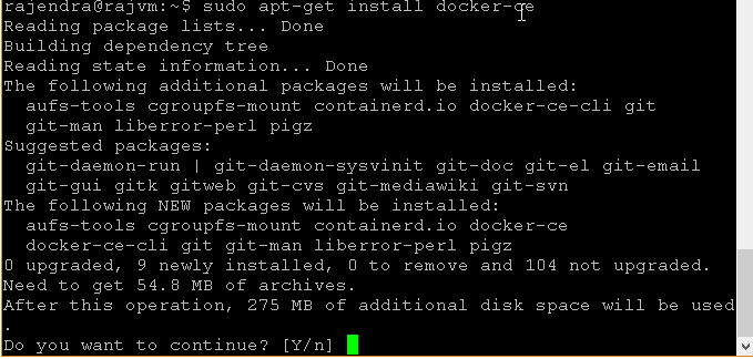 We get a message that this operation will take 275 MB of additional disk space. If we want to continue, type ‘Y’ and then press ‘Enter’