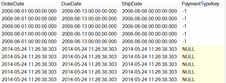 - Create a staging table in the data warehouse existing of the fact table key along with the new PaymentTypeKey.