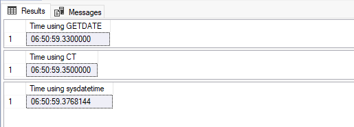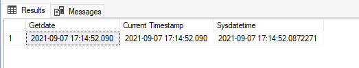 Output is showing in the below image. All three functions are returning the same timestamp but SYSDATETIME is giving more fractional seconds accuracy as compared to the rest of the two functions.