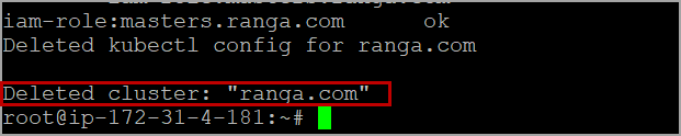 Execute below command to delete the K8s cluster using KOPS. Replace ranga.com with the name of your K8s cluster. This will delete all the resources created by KOPS. Before executing this command you need to remove the policy “ElasticLoadBalancingFullAccess” that you attached manually to the role associated with the master node.