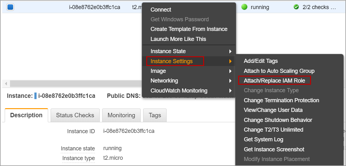 Select the above-mentioned policies. Click on Next and Review. Enter the role name and click on Create Role. Now navigate to the EC2 Dashboard and select the Ubuntu instance you created above, Right-click -> Instance Settings -> Attach/Replace IAM Role. Select the IAM role you created above and click on Apply.