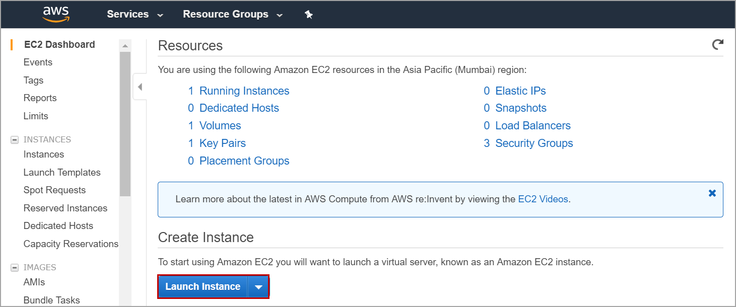 Configure instance details, storage, and security groups and launch the instance using a new key pair or use the existing key pair if already have one.