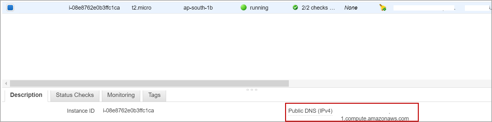 Now open putty and enter the hostname. To know the hostname of the Ubuntu instance, navigate to the EC2 dashboard, select the instance and copy the public DNS as shown in the below image.